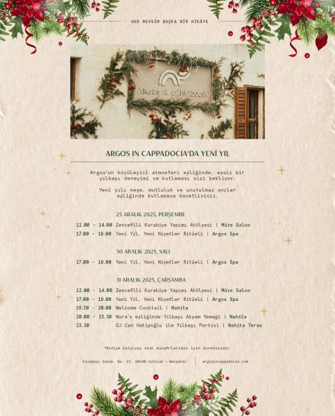 Binlerce yıllık bir manastır yerleşkesi, yerleşkeye bağlı mağaraları, yeraltı tünelleri ve tarihi evlerin kalıntılarının restore edilmesiyle hayata geçirilen Argos in Cappadocia, Kapadokya’nın kalbinde, Uçhisar Köyü’nün yamaçlarında yer alıyor. Dokuz konaktan oluşan ve 71 odayla hizmet veren otel, yamaca kademeler halinde yayılıyor ve antik araziyle kusursuz bir şekilde uyum sağlarken, aynı zamanda rafine konfor ve olağanüstü hizmet sunuyor. ‘Her Mevsim Başka Bir Hikayedir’ mottomuza sadık kalarak, her manzaranın farklı bir hikâye anlattığı bir manzara sunarken, her ziyareti 71 benzersiz hikâyeden oluşan bir koleksiyona dönüştürüyor. Özel konumu, yaşam alanlarını birbirine bağlayan benzersiz peyzajı, otantik yerleşime olan estetik sadakati, incelikli iç dekorasyonu ve üstün hizmet kalitesiyle Argos, önemli bir model oluşturuyor ve Kapadokya’nın gelişiminde de önemli bir rol üstleniyor. Sürdürülebilir ve ekolojik gelişimin bir modeli olarak Argos, geçmiş ile gelecek arasında köprü kuruyor.