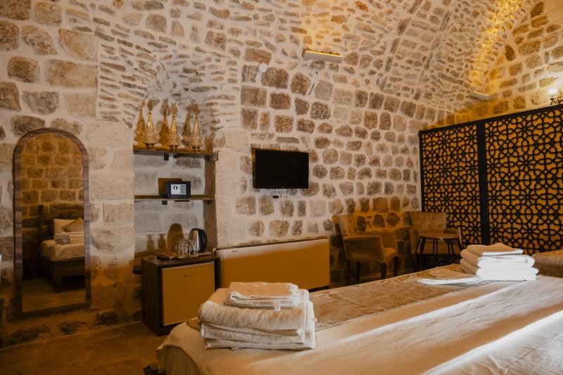 800 yıllık kadim bir geçmişin izlerini taşıyan Kadimhan Konağı, Mardin’in kalbinde, zamanın sessizliğine saklanmış bir hazine gibi yükselir. Sadece 10 odadan oluşan Kadimhan Konağı, kalabalıklardan uzak, samimi ve sıcak bir atmosferde misafirlerini ağırlar. Sessizlik ve huzurun yanı sıra, su sorunu yaşamadan, her koşulda misafirlerinin ihtiyaçlarını karşılayan hizmet anlayışıyla, adeta evinizden uzakta ama eviniz kadar güvenli bir durak sunar. Kadimhan Konağı; taşın ihtişamı, tarihin derinliği ve Mardin’in eşsiz atmosferiyle size yalnızca bir konaklama değil, aynı zamanda unutulmaz bir yaşam deneyimi armağan eder.